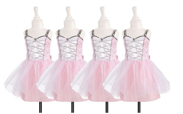 • 8 wundervolle Ballerina-Kleidchen in Rosa-Weiß mit silberfarbener Paillettenverzierung (für 5–6 Jahre)