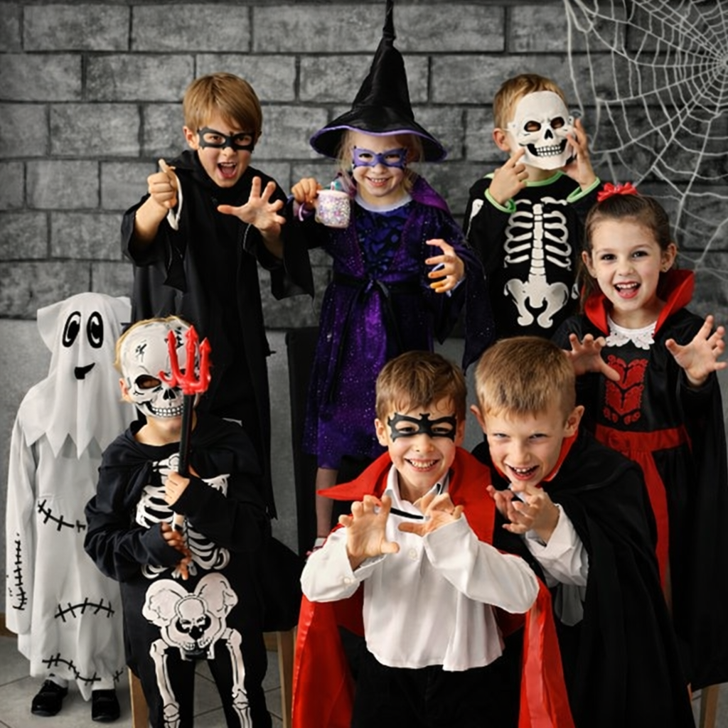 Kostüme wie Skelett, Hexe, Vampir, Teufelchen, Gespenst etc.
