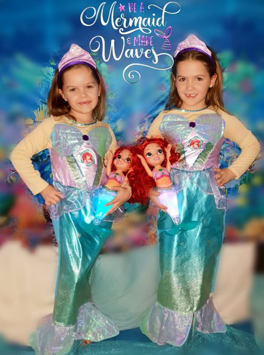 mind. 8 wunderschöne Meerjungfrauenkostüme in blau, grün, teilweise in pink und mit GlitzerFür das Geburtstagskind legen wir ein extra schönes ArielleTM Kleid bei.